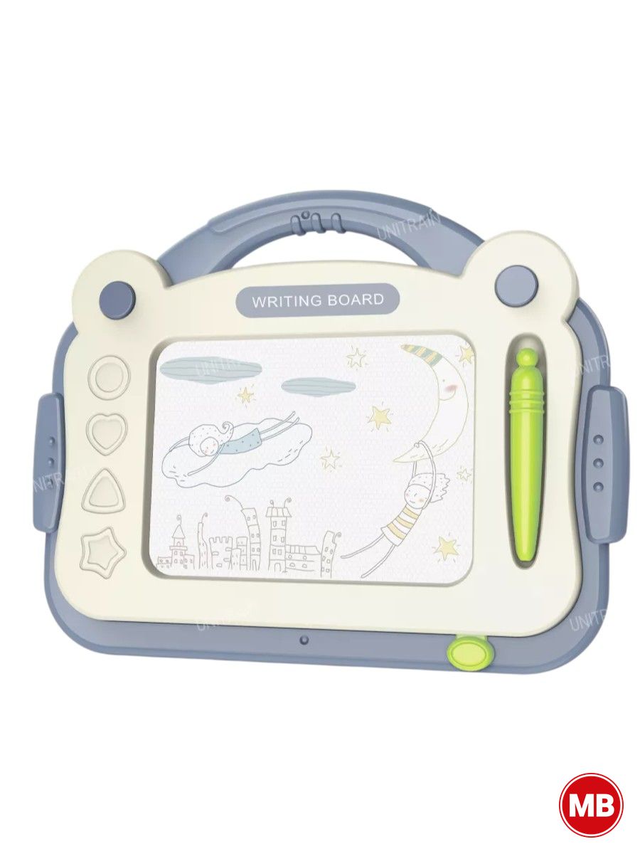 Магнитная доска с ручкой (голубая) — развивающая игрушка для детей, которая помогает тренировать воображение, внимание и мелкую моторику. Голубой цвет делает доску привлекательной для малышей, а удобная ручка позволяет легко рисовать и стирать изображения.