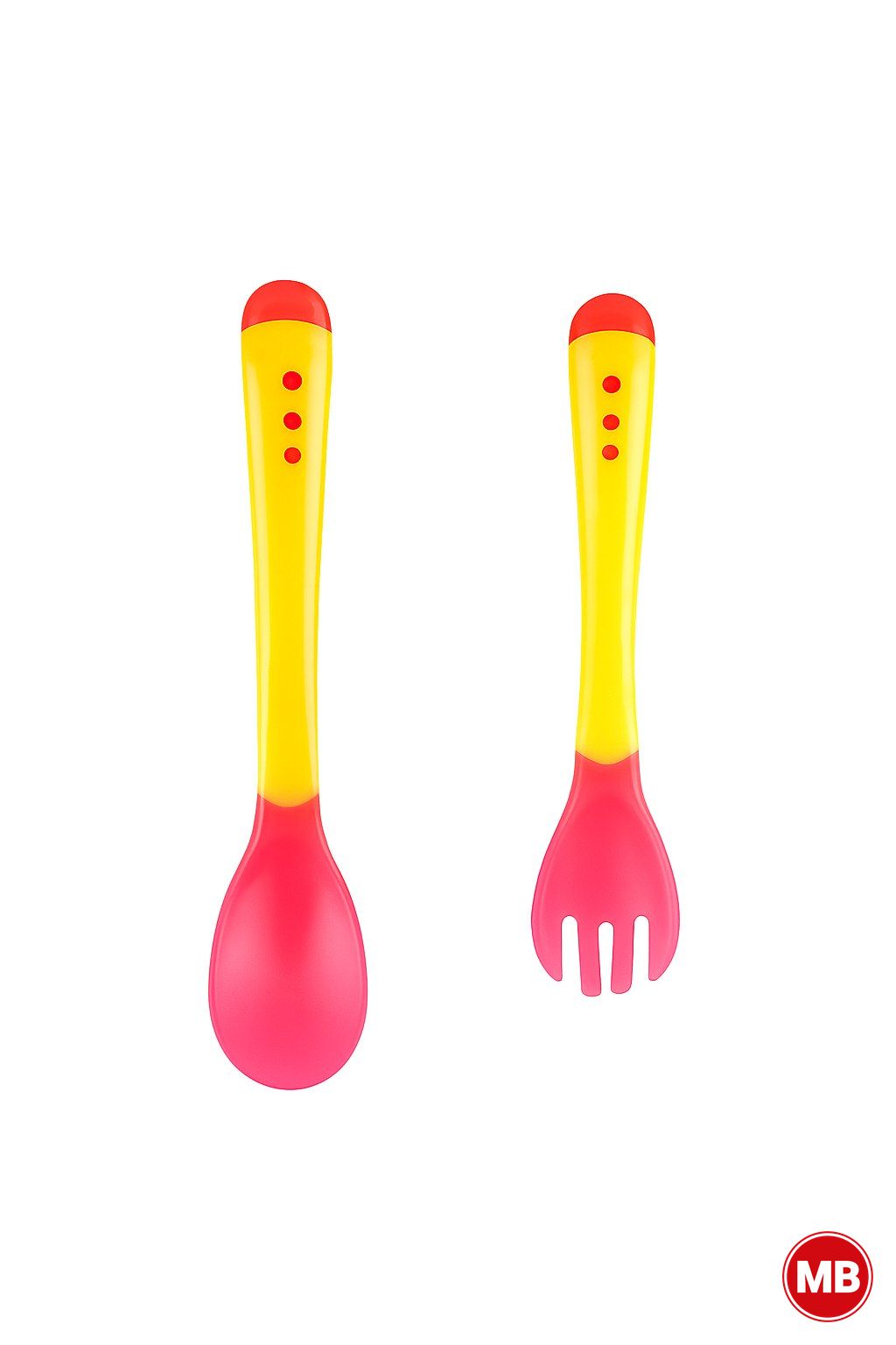 В комплект входят две ложки: термоложка для контроля температуры и обычная ложка для прикорма. Такой набор подходит для использования дома, в поездках или на прогулках, что делает его практичным и универсальным. Светло-оранжевый цвет привлекает внимание ребёнка и делает процесс приёма пищи более интересным, а разнообразие форм и мягкость материала развивает моторику рук и координацию движений.